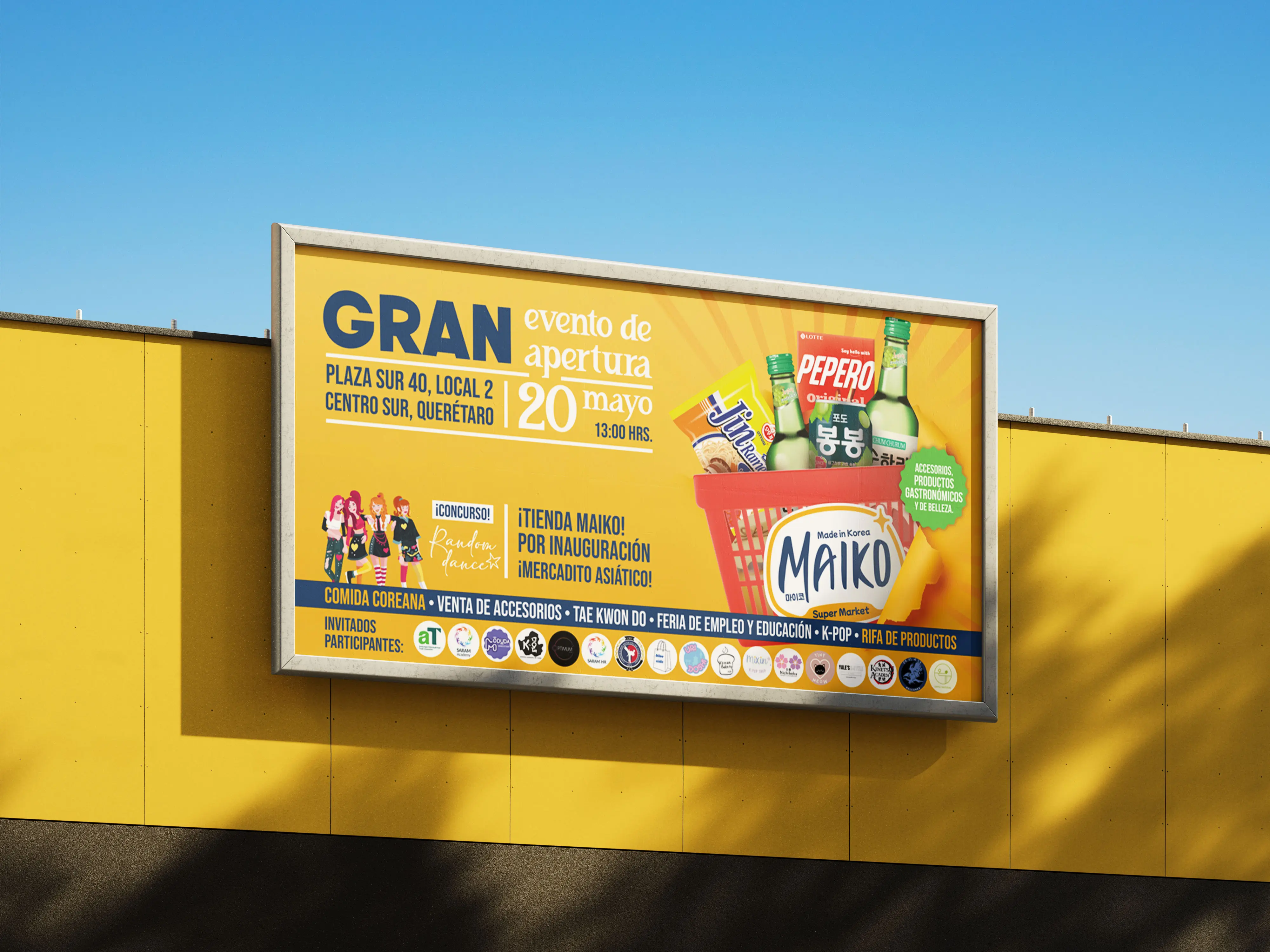 También elaboré un dossier para conseguir sponsors y coordiné la publicidad para la inauguración, combinando estrategias digitales e impresas. Para el evento, colaboramos con la Academia de idiomas en la que laboraba y participé en la organización de actividades para atraer público, como un “Random Dance” popular en la comunidad K-pop.