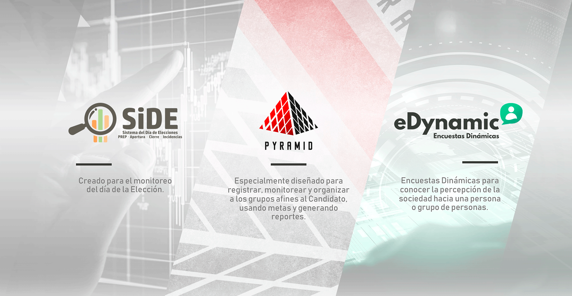 Por otra parte, en esta Agencia también realizaban sistemas para encuestas de tipo político, sobre todo en Oaxaca; mi aportación en fue únicamente crear los logotipos de dichos sistemas (SiDE, Pyramid y eDynamic) y presentaciones de ventas. Mientras que también participé de forma activa en el diseño de aplicaciones como en CrediAbi y LDG Mobile.