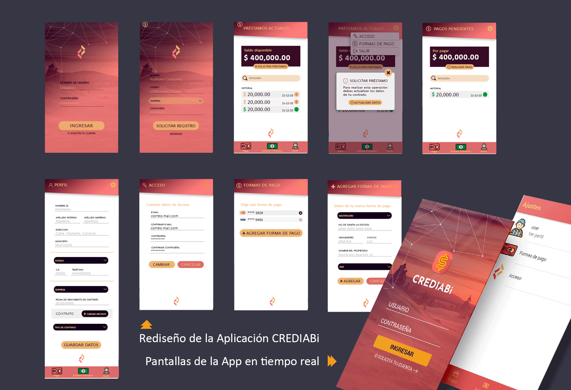 CrediABi fue un proyecto de aplicación financiera desarrollado para Grupo ABi, una empresa dedicada al otorgamiento de préstamos. El objetivo del producto era permitir que empleados de distintas empresas pudieran solicitar préstamos desde su teléfono móvil, contando con el respaldo de la empresa donde trabajan y una cuenta bancaria para el depósito, lo que permitía acceder a tasas de interés más bajas.