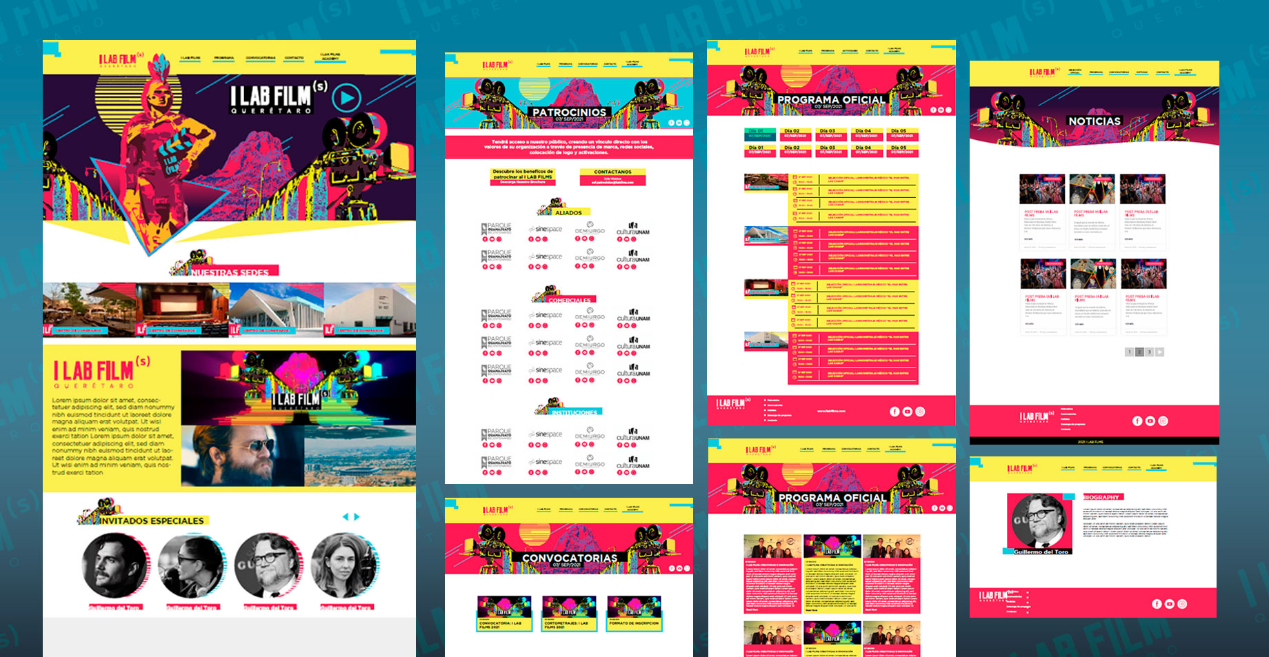 iLab Films fue un evento de cine independiente, y fue un proyecto iniciado por un grupo de jóvenes cinéfilos, el evento tuvo dos ediciones en la Ciudad de Querétaro; la primera el 3 de septiembre de 2021, y la segunda el 11 de agosto de 2022. Fui invitada a participar ya que necesitaban un sitio web informativo para comunicar su programación, sedes y actividades hacia su público. El proyecto requería transformar un diseño existente en una experiencia web funcional, responsiva y fácil de mantener.